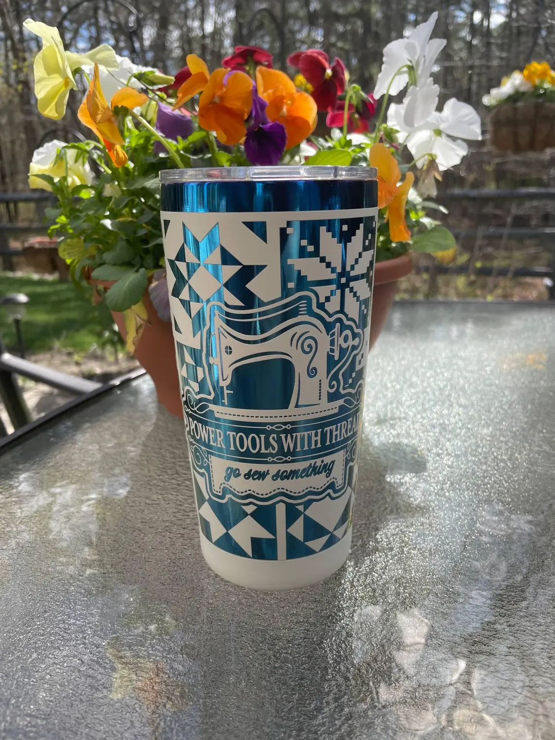 Fuel your next sewing session with this 20oz “Go Sew Something” tumbler — made for sewists, quilters, and crafty creators who thrive on thread, fabric, and caffeine. Wrapped in a detailed spool-and-thread design, this stainless steel tumbler keeps your favorite drinks hot or cold while you stitch away.