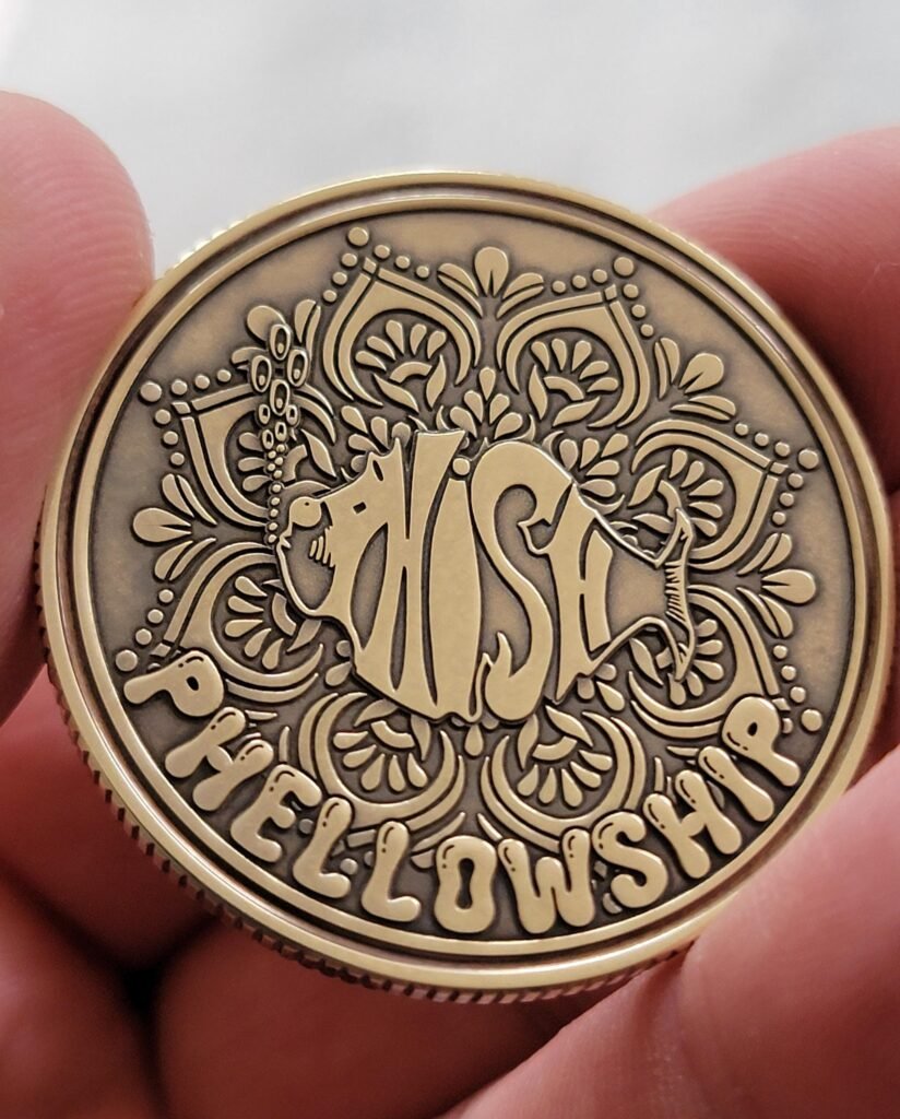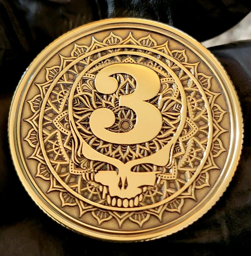 NA Stealie recovery anniversary coin with years on front and NA symbol on the back.