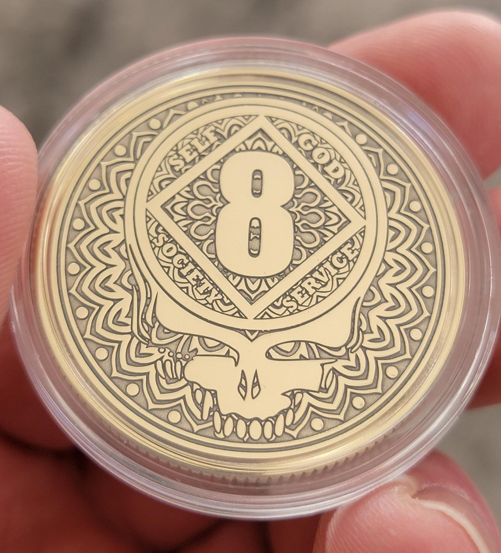 Stealie AA recovery anniversary coin. Please complete personalization section.