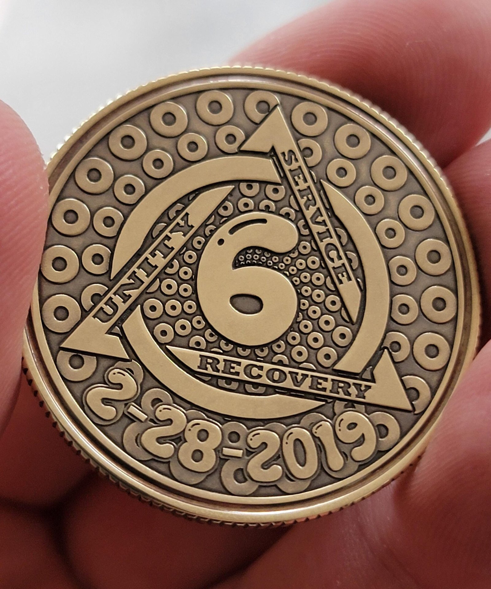 Stealie AA recovery anniversary coin. Please complete personalization section.
