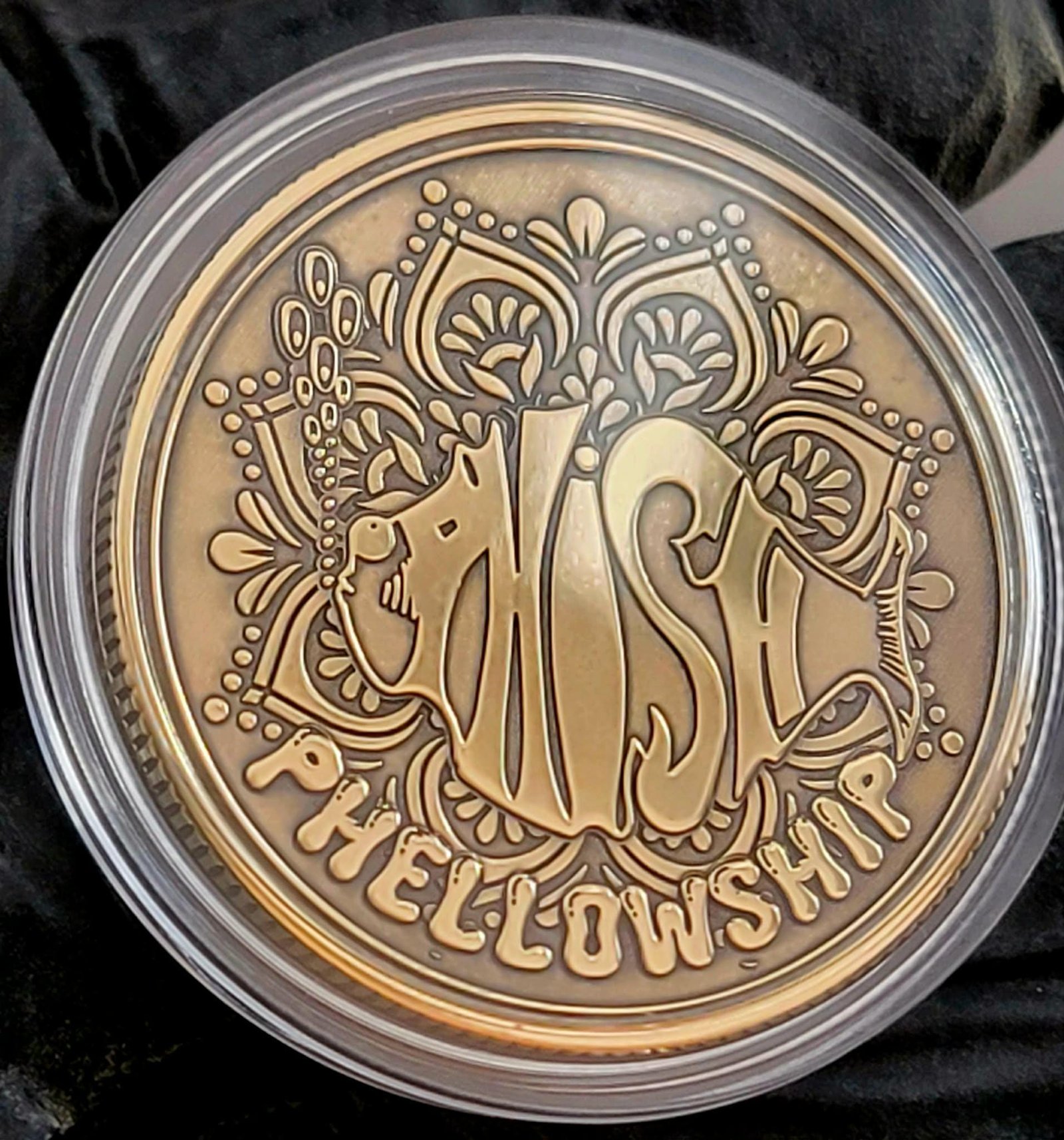 Phish Phellowship 40mm solid brass recovery anniversary coin. Comes with protective coin capsule and velver jewelry bag. Please add the years and date in the personalization section. Thank you!